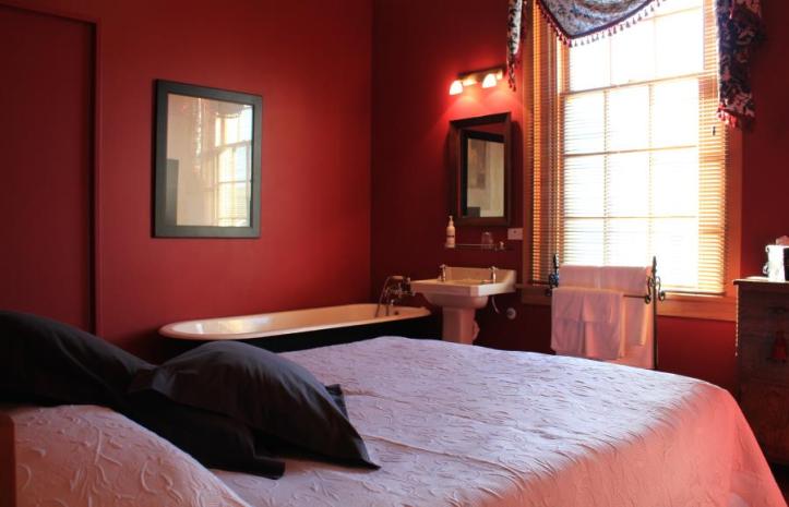 (From $160.00 Sleeps up to 2 ) which oozes “romantic opulence”. Guest can soak themselves and enjoy what Rose calls the “old world character charm of a claw foot bath”, sip a glass of bubbles and just soak up the vibes. The Scarlet Room includes a Queen size timber bed.
