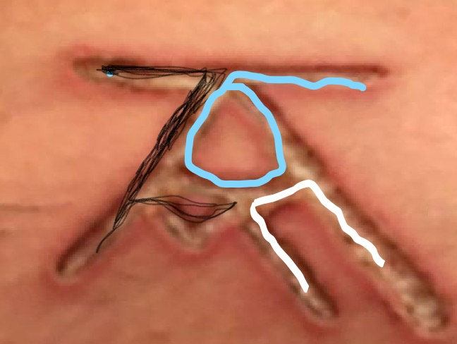 Various versions of the NXIVM  brand exist (basically a various version of the infinity sign, eye of Isis, masonic compass or sailors ropes you find in shady tattoo shops world wide)some are open for contention and debate online. The FBI confirmed organised traffickers are now branding their property and using symbols in an attempt to avoid detection while simultaneously marketing their wares to the right demographic (those aware of what the symbols mean).
