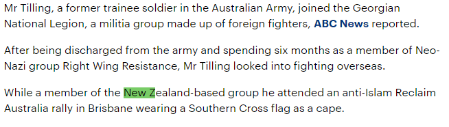 Chapman temporarily moved to Hamilton a few years ago after being betrothed to Mormon missionary Claire Clifford before returning to found RWRNZ’ (‘Right Wing Resistance New Zealand’). RWR is the New Zealand far right organisation listed in Australia as recruiting right wing Australian who later fought as mercenary for western backed Neo Nazi militia in the Ukraine. Australia and New Zealand authorities are keeping how the Australian mercenaries travelled to the Ukraine close to their chess. Thus replicating the same silence which surround Brenton Tarrant Wellington Australian Embassy visa documentation and his departure from New Zealand where his where about and travel itinerary remains a mystery, after he first arrived in New Zealand in 2010, until a six year black out. Though Tarrant himself states he visited the Ukraine.