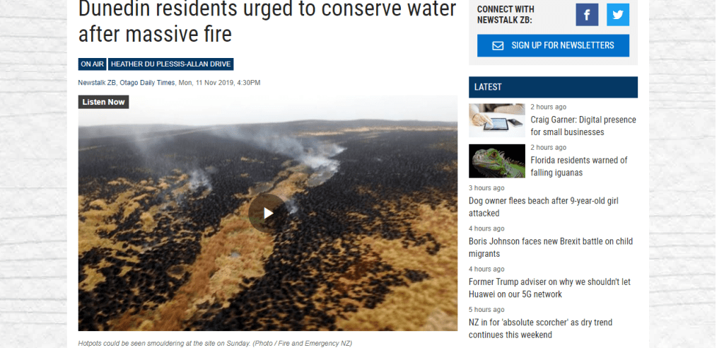 Dunedin has had two fire (cause unknown) this summer that underscore the vulnerability of water. One at Deep Stream, were the city water reservoir is also located, and a smaller fire at Harrington Point at the spot where city water tanks were recently installed. It replicates a situation in Nelson where water shortages where spiked by several fires that broke out simultaneously and were linked to arsons. Water contamination in Canterbury at a farm in Oxford was serviced by Waimakarirri Irrigation Limited (WIL) who also hold water rights. WIL whose shareholding have shrunk in the past decade from over 280 shares to 200 shares, as large interest holders consolidated and buy out smaller investors. WIL believe the cost of infrastructure should not be placed on commercial users but shared by the public and regulated. Regulation of course should be managed by private companies such as themselves.