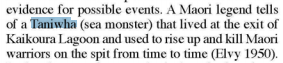 The Pegasus Bay fault-line is further accentuated by another factor. The build up of silt which if disturbed, is recognised as having the potential to cause a Tsunami which would reach from north Canterbury to Wellington with an estimated casualty rating of 200,000 fatalities and risk triggering a seismic event to boot. Maori mythology refers to the Kaikoura taniwha and shows Tsunami in this region are likely one in a hundred years not one in 2500 years as more recent media reports claims. People living there would have around 15 minutes to possibly an hour reach high ground. And yet there is still a battle to install a localised tsunami warning siren despite multiple request for this to be so.