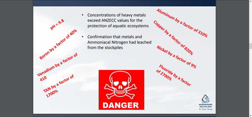 2. Not just ouvea dross dross contains many toxins. As Edendale Environmental Southland testing (image to the left and above) showed. See also Winton AB Fetiliser, Edendale, Lumsden waste sites.