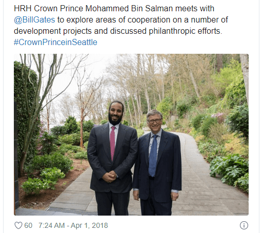 The Bill and Melinda Gates Foundation did not respond to media requests for further comment on the interview. It is however known Gates like Bezos and Epstein also in met with the Crown Prince Salman.