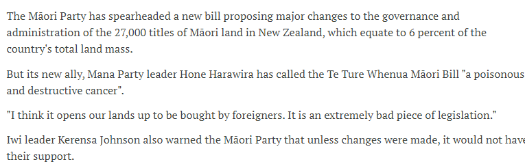 It as dubious as the currently shelved Maori Land Court reform. A liberal sounding bit of legislation which sought to give Corporate pro TPPA iwi, (headed by Patriarch with old school ties and honkey surnames) more power along with their business partners than local hapu. On that point think Ihumato Fletchers, think Ōtautahi Fetchers rebuild, think the Kaikoura highway POU – Protect Our Unique Coastline protest.