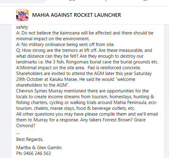 Their have being many hui with Rocket lab among the various hapu but ultimately few promises have being keeped and little has being done for the locals with the bulk of the provincial fund in this lower social economic area with the bulk of the funds in this high suicide substance abuse and gang issue going directly into Rocket labs pocket with few promised jobs actually ever materialising.