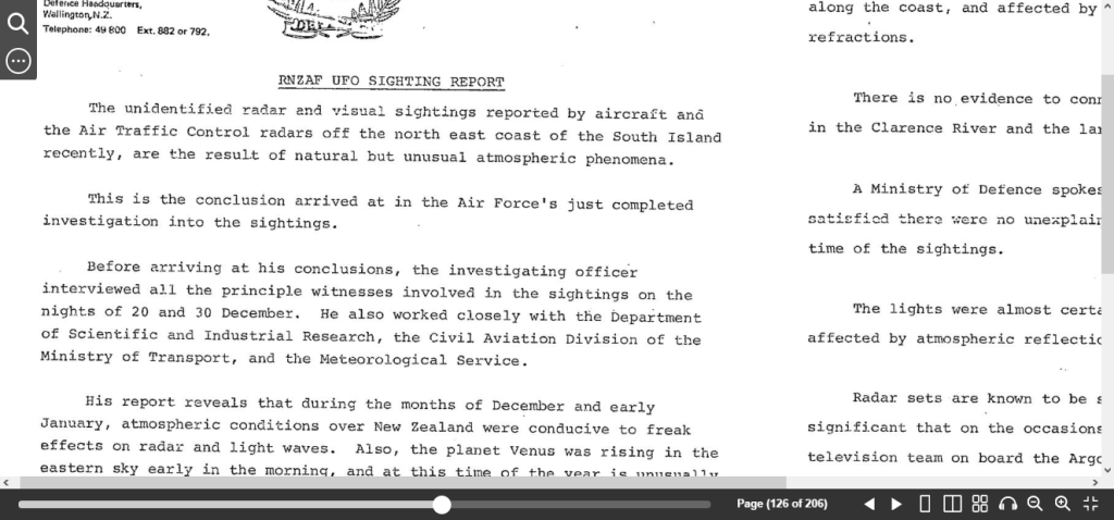 File Title : Investigations of Unidentified & Radar Sightings East Coast South Island – December 1978