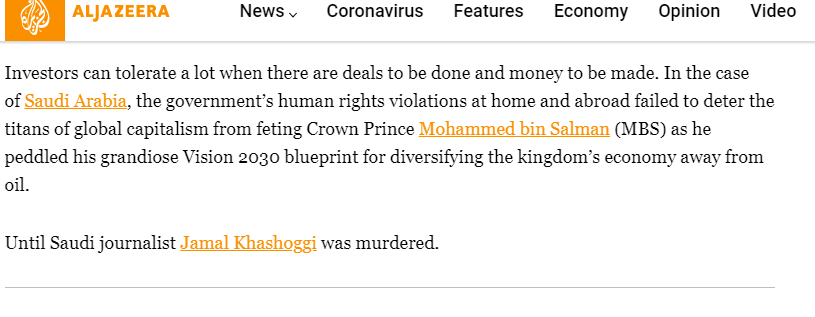 Labour must have known this. For the whole world knew this was one of the key and chief factor which lead to the brutal murder of dissident journalist Jamal Kashoggi (and marks the one occasion when MFAT turned down an arms related export permit) after he exposed the true aims of Vision 2030 to the world.