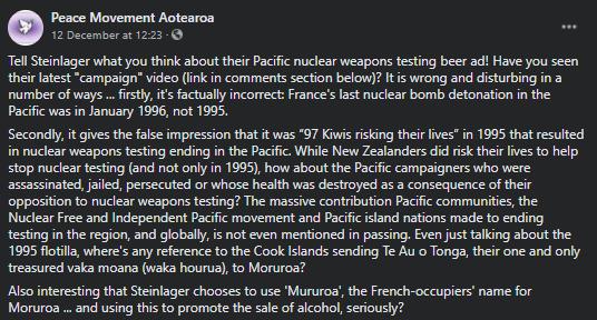 Much in the same way Stein Lager has also jumped on the promotion of Te Reo Maori, along with many other other Corporations trying to hide their exploitative parasitic walks under nice words. This is despite the impact of alcohol on New Zealand lower social economic and largely Maori Polynesian communities.