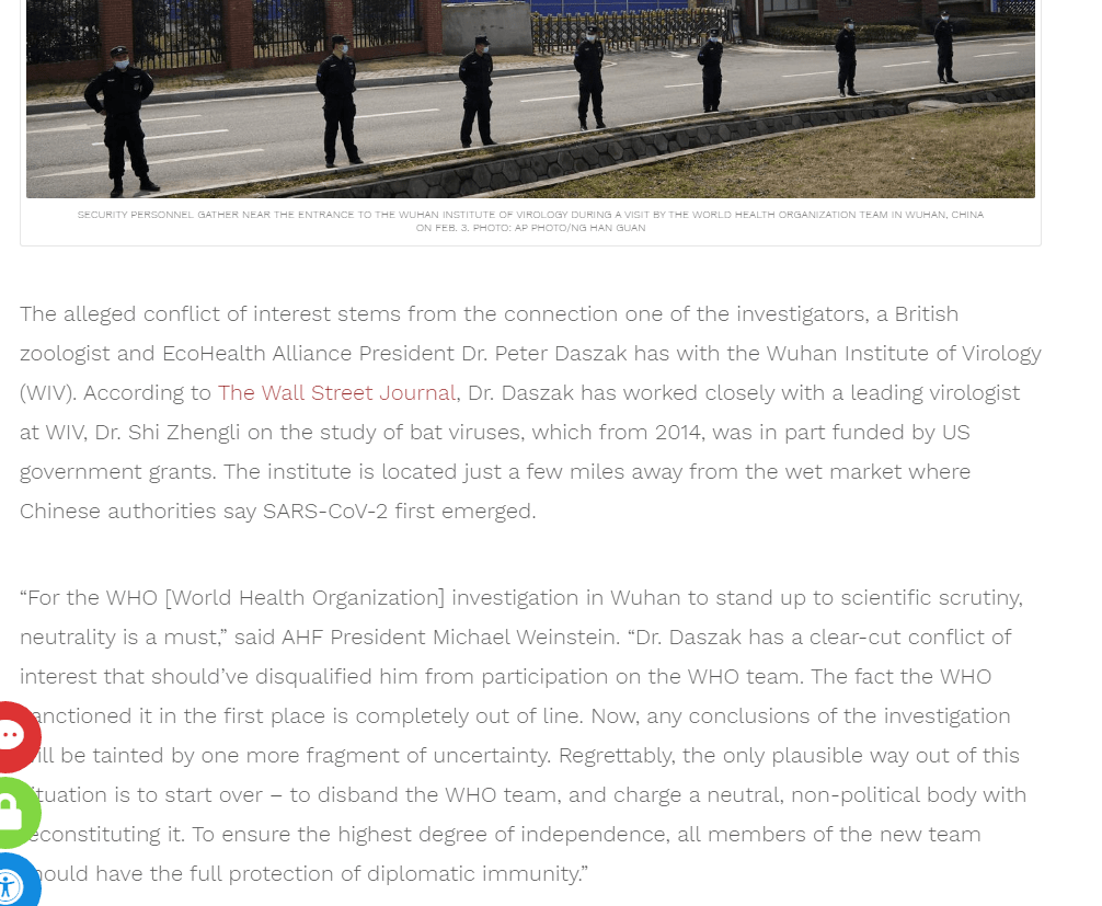 A third source critical of WHO investigation is Dr Li-meng Yan, a defector from a Hong Kong virology lab, who has constantly contradicted WHO and Daszak’s group of big pharma lobbyists (who single handily can be identified as the primary source quoted in western corporate media who deny Wuhan is linked to Covid 19).