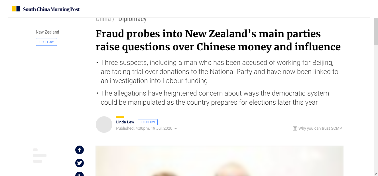 The Ortis affair has unequivocally outed New Zealand as the weakest link in the Five Eyes alliance repeatedly. But in this case blame can be pointed at both the governments of Helen Clark (Labour) and John Key (National) with Key actually changing charity tax laws in 2009 to benefit money laundering groups. While both Labour New Zealand First and National have featured prominently in cases by the Serious Fraud Office tied to inappropriate donation by parties backed state owned Chinese interest tied to Chinese military intelligence.