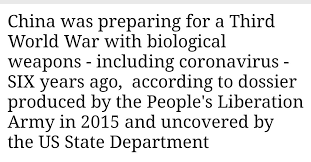 A document written by Chinese scientists and Chinese public health officials in 2015 discussed the weaponisation of SARS coronavirus. Titled The Unnatural Origin of SARS and New Species of Man-Made Viruses as Genetic Bioweapons, the paper predicted that World War Three would be fought with biological weapons.