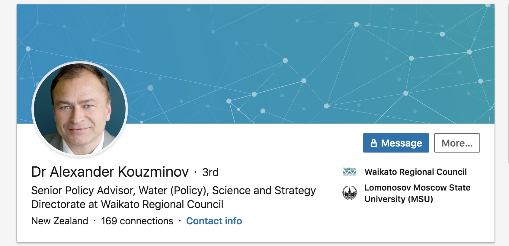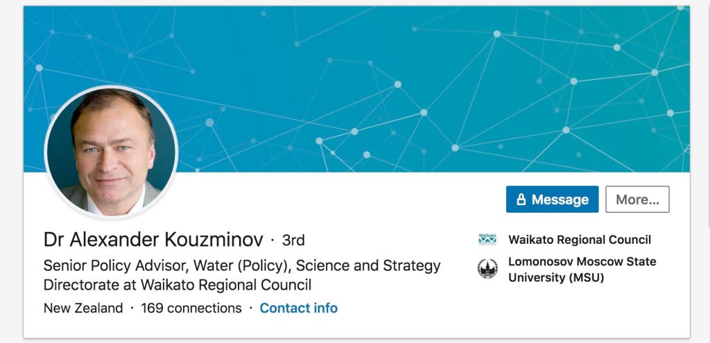 Kouzminov later went to work for the Waikato council as strategic planner for water infrastructure in Waikato. In the same time frame (2019) he became a strategic planner at the time a computer over seeing Hamilton waster water plant was used with official password to release several hundred tonnes of biologically hazardous raw affluent.