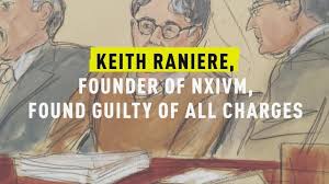 As of April 2019, five people associated with NXIVM including co-founder Seagram heiress Clare Bronfman pleaded guilty to various charges. Its founder Keith Raniere was convicted in federal court of sex trafficking and racketeering on June 19, 2019. On September 30, 2020, Clare Bronfman was sentenced to six years and nine months in federal prison. As of September 2020, it was estimated about 50 to 60 people remained “very loyal” to Raniere who was sentenced to 120 years in prison in October 2020. It followers included media celebrities Alison Mack (Smallville), Kristin Kreuk (Smallville), Sarah Edmonson (Stargate), Nikki Clyne Battle Star Galatica, Grace Park (Haiwaii Five O reboot).