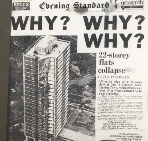 The skit is a satirical reference to the Ronan Point a 22-storey tower block in East London, built on the ‘The Freemasons Road Estate’ on aptly named Butchers Road in Newham, which partly collapsed on 16 May 1968, only two months after it had opened. A gas explosion blew out some load-bearing walls, causing the collapse of one entire corner of the building, which killed four people and injured 17. It takes place 45 years prior to the June 2017, fire in the 24-storey Grenfell Tower block that saw 74 people die as a result of the same sort of alumni based nepotism. In 2018 The Telegraph UK reported that the London Fire Brigade has accepted a “controversial” donation of a whopping £2.5 million (US$3.5 million) from the UGLE’s London lodges for outfitting two ladder trucks with extended aerial ladders to reach high-rise building fires, “like the horrific Grenfell Tower” blaze last July;