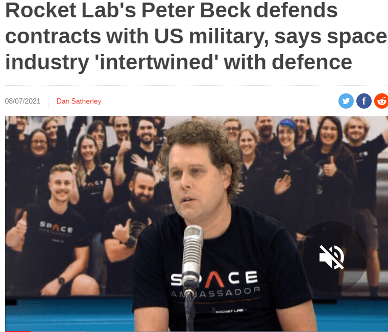 In 2016, Rocket Lab chief executive Beck was among the speakers at a summit for chief executives of companies associated with In-Q-Tel. A programme from the summit indicated Rocket Lab was among the firm’s portfolio companies at the time. Rocket Lab is not currently listed as a portfolio company on In-Q-Tel’s website. Stuff reported “A Rocket Lab spokeswoman would not say whether the company remained on In-Q-Tel’s books”.