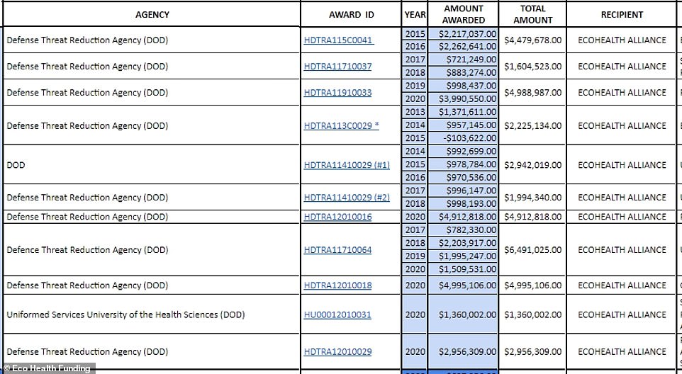 April 2020: Richard H. Ebright who sits on the Board of Governors Professor of Chemistry and Chemical Biology at Rutgers University, and Laboratory Director at the Waksman Institute of Microbiology told Taiwan News that one of the WHO inspectors is Peter Daszak the contractor who funded the WIV’s research on bat SARS-related coronaviruses, with subcontracts of $200 million in USAID funding (part funded by the Pentagon in turn) and $7 million in NIH funding. Daszak has received hundred of million in funding from the Pentagon.