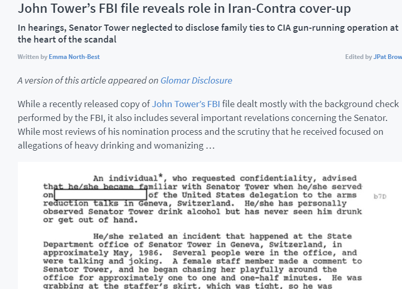 Towers, according to Time Magazine’s Chief Investigative Reporter Johnathan Gwynne, had being bribed with sex by the rogue bank Bank Credit Commerce International. The bank that the CIA and Saudi Arabia would partner with during the 1980’s when American president Ronald Regan’ inner circle decided arming Islamic militant and right wing terror groups was a good idea. No wonder the Towers Commission was described “as the best committee money could buy”.