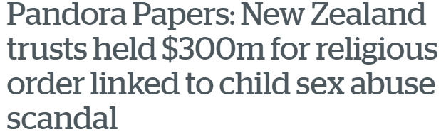 Interestingly the Pandora Papers show how the Roman Catholic order when caught up in an international paedophilia scandal squirrelled nearly $300 million in assets in secret New Zealand trusts with funds being pumped into New Zealand’s real estate market. A review of leaked documents by the ICIJ “shows deep connections to the Legion in all three trusts, which share the same New Zealand address and have the same trustees managing them”.