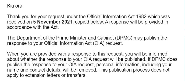 My OIA was at less acknowledged, after a phone call to the PM Office’s NEMA team., due to the magic power of my general bad mood having decided to stop smoking two days before hand.