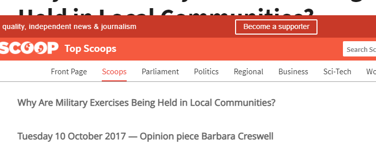 Scoop Media asked in 2017 Why Are Military Exercises involving foreign forces Being Held in Local Communities in New Zealand?