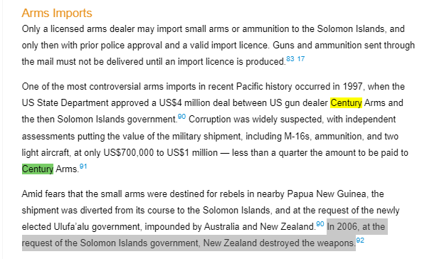 In 1999 I also detailed in my first book how the USA’s involvement in the Solomon Island ethnic dispute could be seen via the role of Century Arms in shipping arms to the Solomon Islands (believed to be destined for PNG), after first gaining approval from the US State Department.