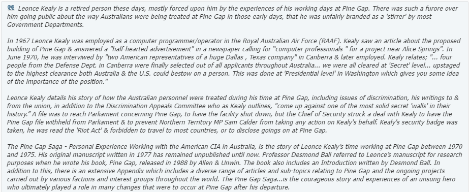Today mining interest are are advanced by Phoenix Mining whose interest in the Solomon from 2009 has being assisted by Leonce Kealy a business associate of Kelvyn Alp a director in Phoenix and the front person for Counter-spin, a former mercenary and would be militia leader, with numerous links to the US and South American financed far right. Alp boasted Kealy was a former CIA analyst on his own facebook. This is not quite correct Kealy worked at Pine Gap for the Americans in Australia. Today is Kealey is an advocate of USA styled arms rights and Kealey is listed on his linked profile as a former administrator for the Aboriginal Community and liaison with mining companies in Weipa. The Weipa region is extremely rich in bauxite, with much of the surrounding land around the township leased to the mining company Rio Tinto.