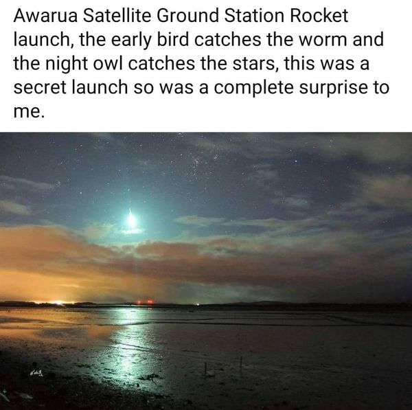 October 12th 2021: Blue Jet (sprite)/Rocket Launch (possibly Waikaia) photographed over Awarua Satellite Ground Station Invercargill Southland.’