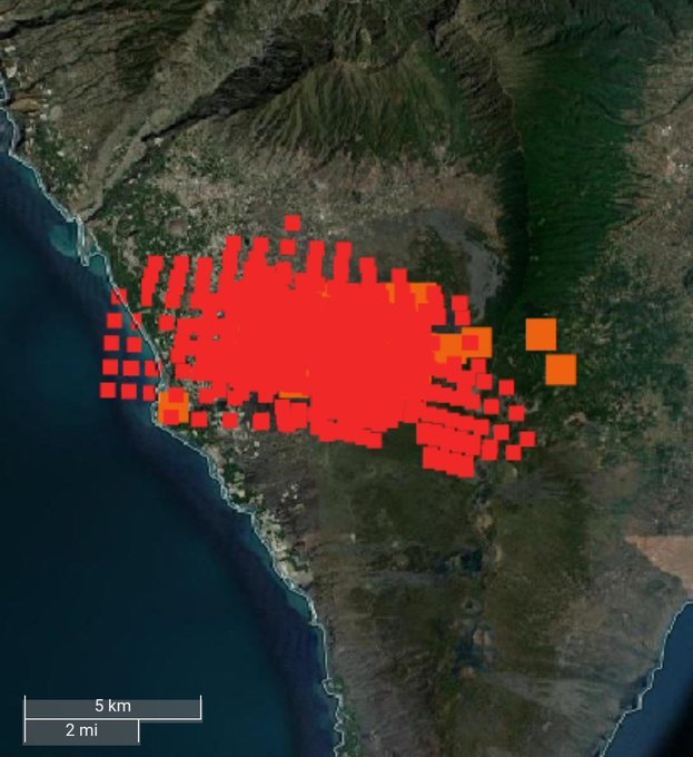La Palma shows hotspots in man made like grid lines on Euro-Med Seismology Centre website. which USA Todays Fact Checker claimed this was normal. The grids however also matched hotspots heat spots patterns detected separately 9via heat) by NASA FIRMS MODIS/VIIRS, who interestingly and also showed identical hotspots plus oddly hotspots in the ocean.
