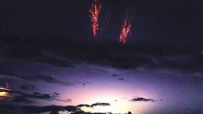12 October 2021: A “rare” Blue sprite is photographed over Awarura Bluff South New Zealand located in the southern hemisphere.