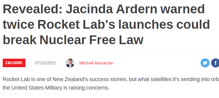 July 7 2021: Jacinda Ardern warned Rocket Lab’s launches could break Nuclear Free Law. PACDAC raised those concerns with the Prime Minister last year and again in March.