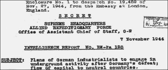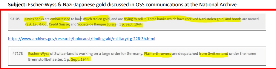 Further declassified documents from the files of the war time Office of Strategic Service (OSS) a covert secret service who after the war was replaced in the USA by the CIA.*1 revealed an escape fund linked to Davos and the Nazi’s post war plans belonging to German industrialist in Holland was estimated as being worth around 10 billion US dollars.