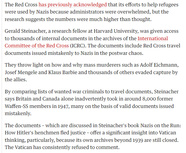 The Gustoloff overseen Stiftung account was clearly there to fund Nazis in the post-war period yet for decades the Swiss government vehemently denied their banks held any significant Jewish assets looted by the Third Reich. A claim which has proven to be an out right lie.