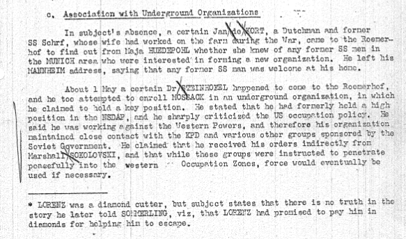 Declassified FBI files show in fact he was a member of ODESSA the NAZI post war which planed to have the Nazi fight on after the war. According to the Sueddeutsche, Erhard was captured by the Americans in Munich after the war with a list of Nazi ‘Werewolf’ members upon him (which included diamond cutters) . The Werewolf units were intended to fight on as a guerrilla force after the surrender, but this never happened.