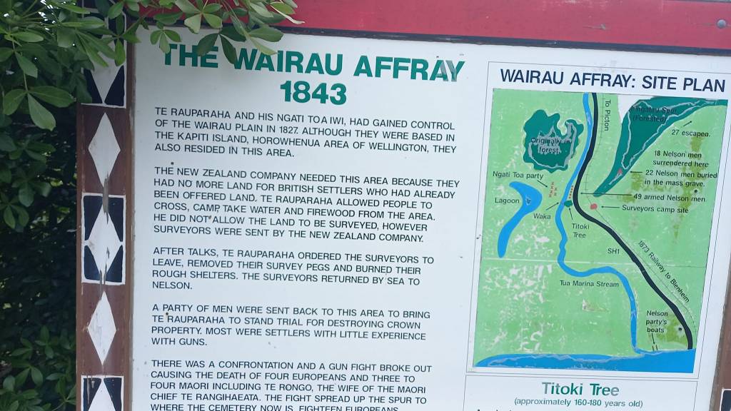 The incident is the first major armed clash between Māori and Pākehā in New Zealand – marking it the first battle of Ngā Pakanga o Aotearoa (the New Zealand Wars) – and the only conflict over land between settlers and Māori recorded officially in the South Island. The New Zealand Company agent Captain Arthur Wakefield, an experienced and seasoned admiralty man educated in strategy and warfare but with little knowledge of colonial development had set out to survey land in Marlborough’s Wairau Valley. Arthur was led to believe the land had been sold by Ngāti Toa based on what his brothers had told him. Te Rauparaha, the senior chief of Ngāti Toa, asserted the land had not been sold to William Wakefield (as Arthur believed) and he saw Wakefield’s survey party escorted from the land pulling up survey pegs and burning down the colonial speculator’s makeshift huts.