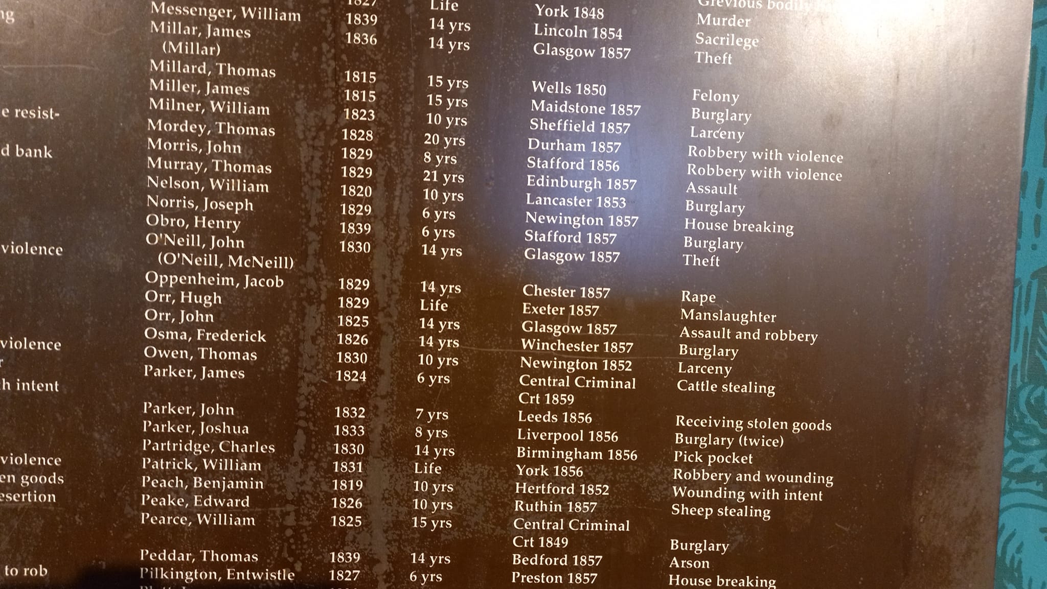 convicts were William Tester and James Burgess (not to be confused with Richard Burgess famed of Maungatapu ‘Murders Rock’), two of four men convicted of the “Great Gold Robbery” in which about 12,000 pounds sterling worth of gold (about $1.88 million today) were stolen from a train in 1855 (later adapted into a Michael Crichton novel and movie starring Sean Connery and Donald Sutherland.
