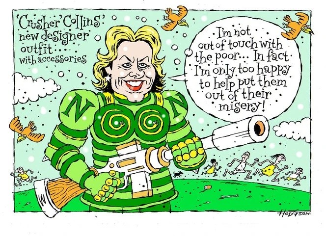 Judith Collin: aka Crusher Collins ‘The Minister for Ball Busting, Police State and Eating Opposition Members Alive’.