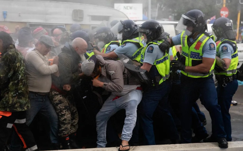 Holding The Line Boiling Point is carefully to capture me ‘charging’ the police lines. Not noted is how 30 seconds before hand I can be seen berating ‘protesters’ who having just joined up masked are throwing things at the police. The events shown on the 6’Oclcock news carefully edited news radically altered from what actually occurred as thousands of protesters never given a chance to tell their side of the story can testify — where they ever given that opportunity to start with. The Mallard imposed black out (Mallard threatening the careers of any journalist who dared bucked him) doing more to create extremism than had the politicians simply meet the crowd gathered on parliament in one of New Zealand largest protest to date a fact ignored by an MSM in the grips of corporate neoliberalism.