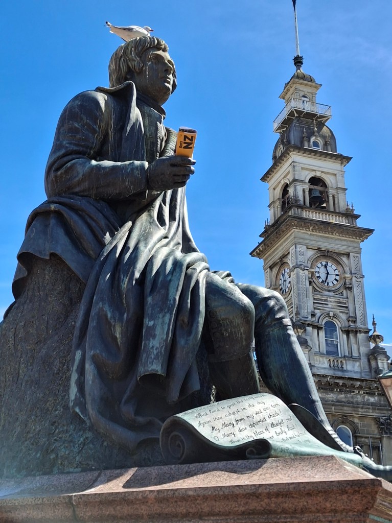 Today the Burns lecture hall at Otago University is named after the poet, while a statue of the poet, constructed in 1887, dominates the Dunedin Octagon. Burns ’uncle, Thomas Burn, was in fact Dunedin’s first spiritual leader. In 1861 Mr. Burns received the diploma of Doctor of Divinity from the University of Edinburgh.