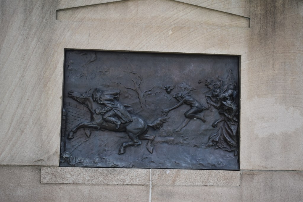 To find the answer to what all the demons and witches on this statue have to do with Burns, focus on Burns’ poem Tam o’ Shanter. This is the story of an unfortunate ne’er-do-well who, after a rousing night at the local pub, is attracted by a clamorous din at an abandoned church. Upon investigation, Tam is transfixed by the sight of a witches’ gathering, celebrating a dark mass under the musical direction of Satan – Auld Clootie playing the bagpipes. Tam cries out in near-rapture, at the sight of a fair witch in a short shirt dancing seductively – “Weel done, Cutty Sark!” – and is then forced to flee for his life after they give chase. Fleeing for the safety of a running stream (a Ravensbourne) he manages to reach it, for faery lore tells us that spirits and the servants of evil cannot abide running water. Tam lives, though his horse’s tail is savagely ripped off by one of the chasing demons.