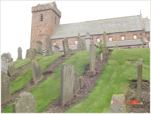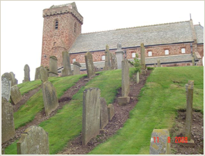 The 18th-century headstones in the kirkyard (church yard) contain Pict symbols in addition to the gravestones belonging to crusaders and master Free masons of the 14th century. Which like the nearby Roslyn and Gill Cathedral in Edinburgh pose a bit of mystery as officially Masonry did not come to England until the 18th century.