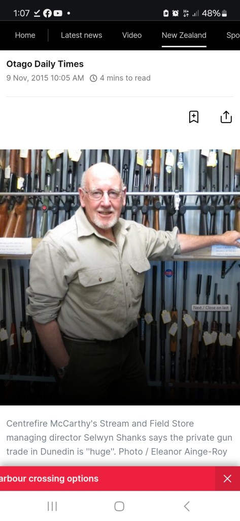 2015 ODT and New Zealand Herald ran issues on gun clubs in 2011 and guns brought on line after interviewing gunshop owner Selwyn Skank.