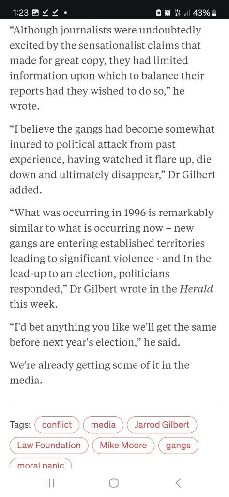In a seperate post I’ll cover later the far right gang ties to Christchurch’s Machivillan politics of the 1970s and 80s’s, the Cheeky Blinders cultute of its meatworks unions and the WTO architect neoliberal spin doctor Mike Moore.