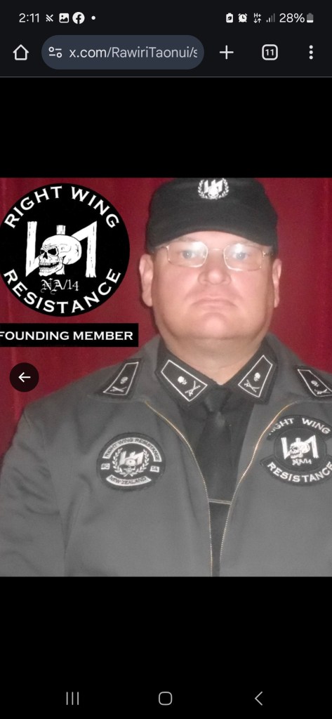 After returning to Christchurch Chapman the “reformed” skin head founded the Right Wing Restance before associating him self with Sue Grey’s NZ Freedom Outdoors Party.