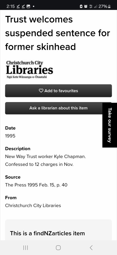 Chapman ran New Way Trust a charity funded by NZ Police and PM office from 1990s to 2014 until he got caught diddling the charities books. That was nearly 15 years after I questioned the merit of the state funding far right groups. Especially one connected to an active far right type with a history of political violence.