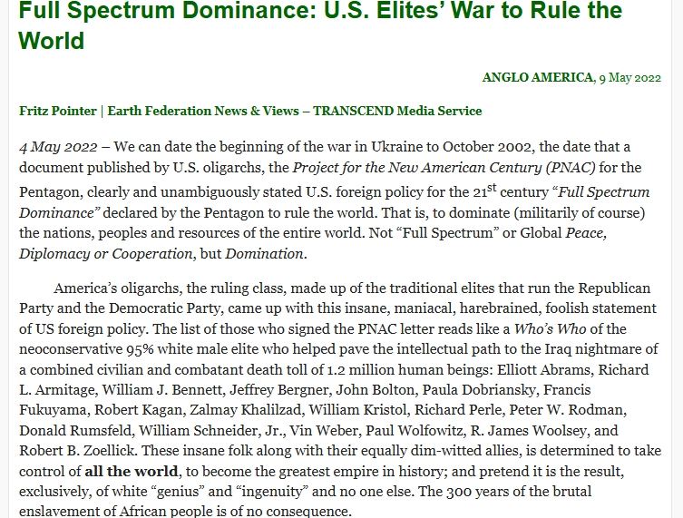 THE FULL HISTORY OF THE UKARAINE CONFLICT FROM THE ROLE PLAYED BY PNAC & THATCHER TO THE CURRENT DAY.