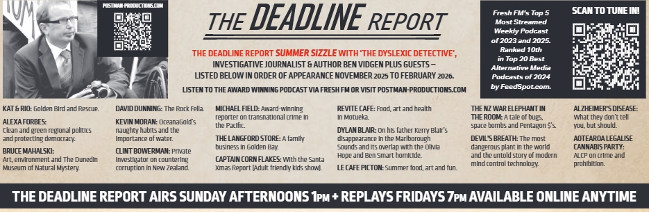 Investigative journalist, broad caster, author, Ben Vidgen, presents a 30-minute show offering quality alternative media backed by quality documented information on the issues not hitting the headlines, but that should be. A double shot of reality, always educational if never pretty. Click here.