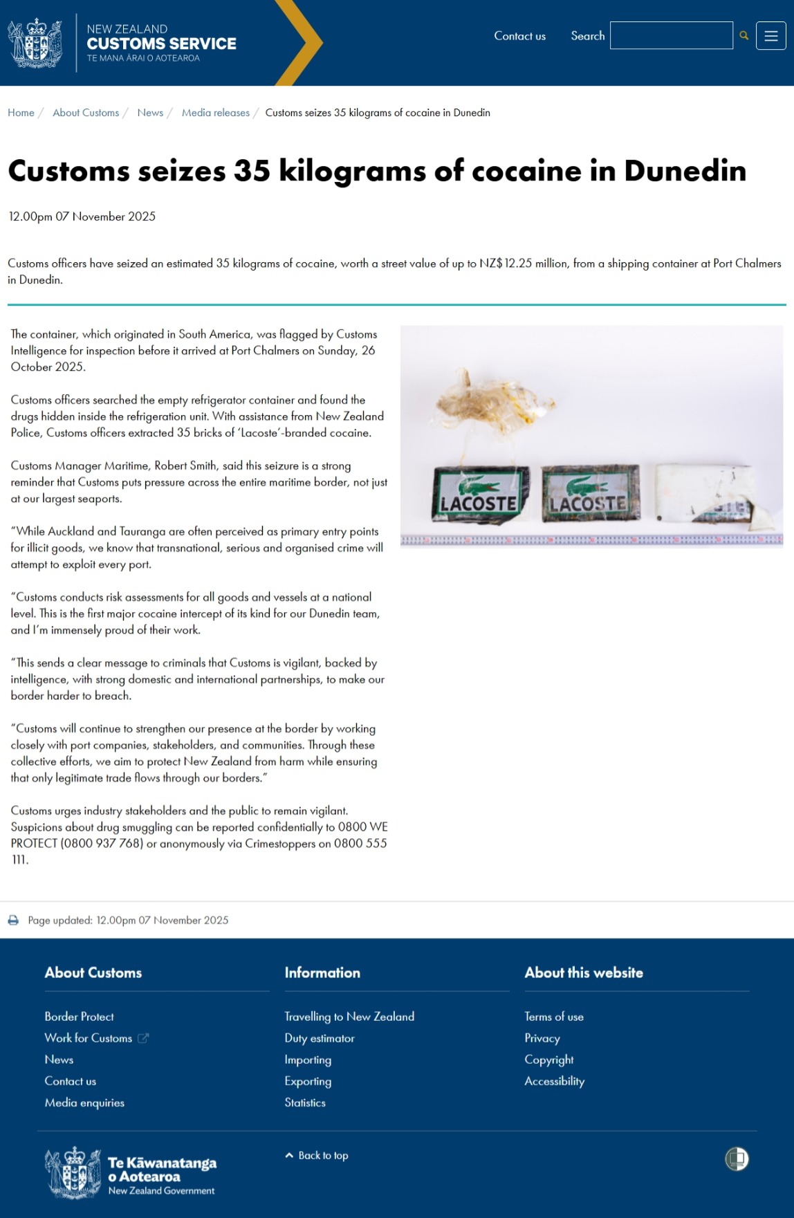 These bust occurred because of offshore police work. The coke deals got pinged after the bad guys encrypted phones turned out to be not so encrypted. 600 million busted this year in Oz ( half the nations annual consumption) and since then 25 assassination on the Australian streets after cash was paid but no product got delivered. But don’t think that the top cops in this country had a single hand in that matter or the Dunedin cocaine bust one of two major NZ cocaine bust this month